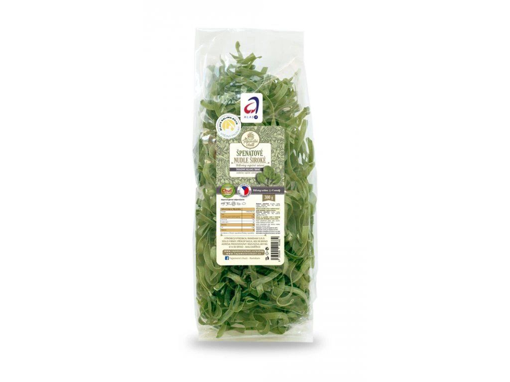Složení: pšeničná mouka, voda, mletý špenát min. 3 %, sušená vaječná směs 2 %